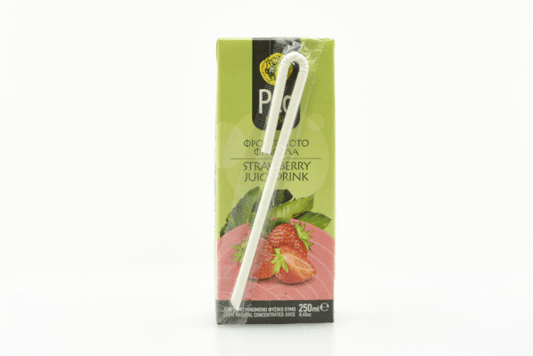 Νερό, συμπυκνωμένος χυμός φράουλα 20%, ζάχαρη,φυσικές αρωματικές ύλες φράουλας, ρυθμιστής οξύτητας: κιτρικό οξύ, αντιοξειδωτικό: ασκορβικό οξύ.